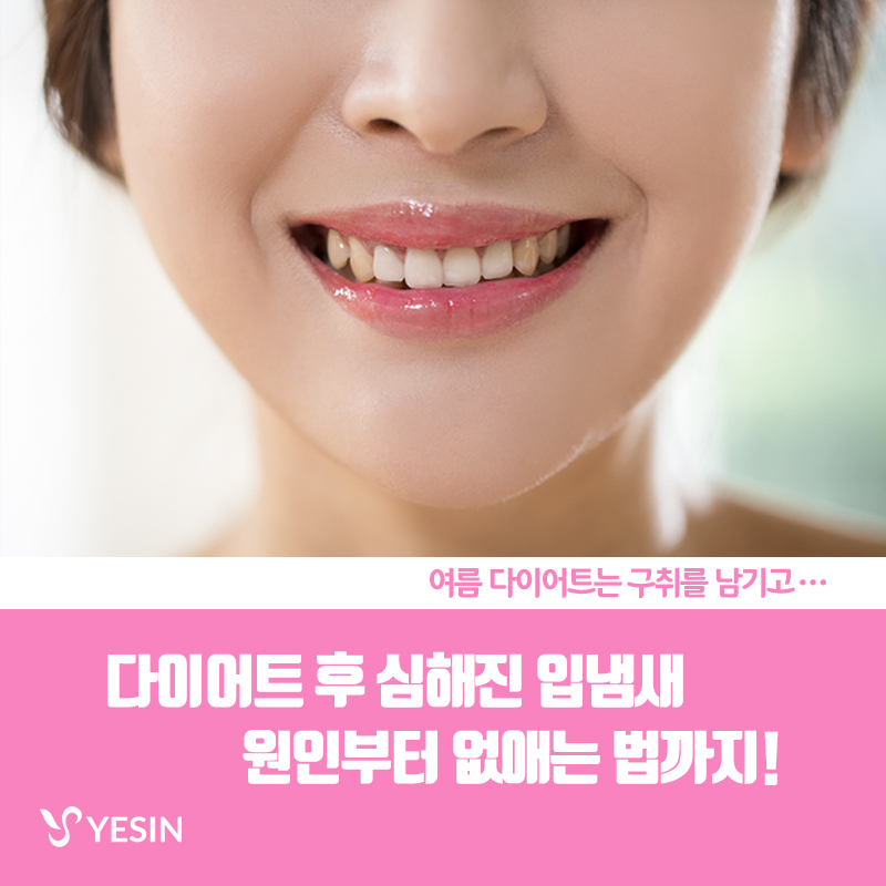 여름에 심해지는 입냄새, 다이어트와도 관계가 있다? 본문 이전글 다이어트의 적 식탐! 어떻게 줄일까? 20.12.22 다음글 다이어트도 습관, 살 빠지는 습관 네가지! 20.12.22