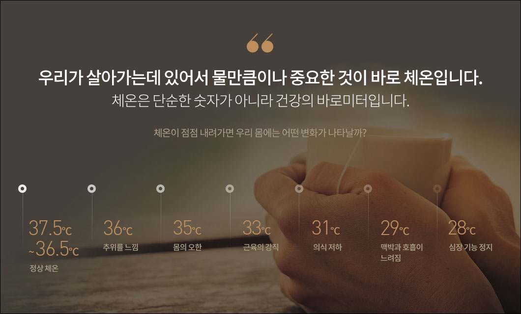 체온 관리를 위한 독보적인 방법으로 건강과 다이어트 분야에서 확실한 결과를 만들어가고 있습니다.